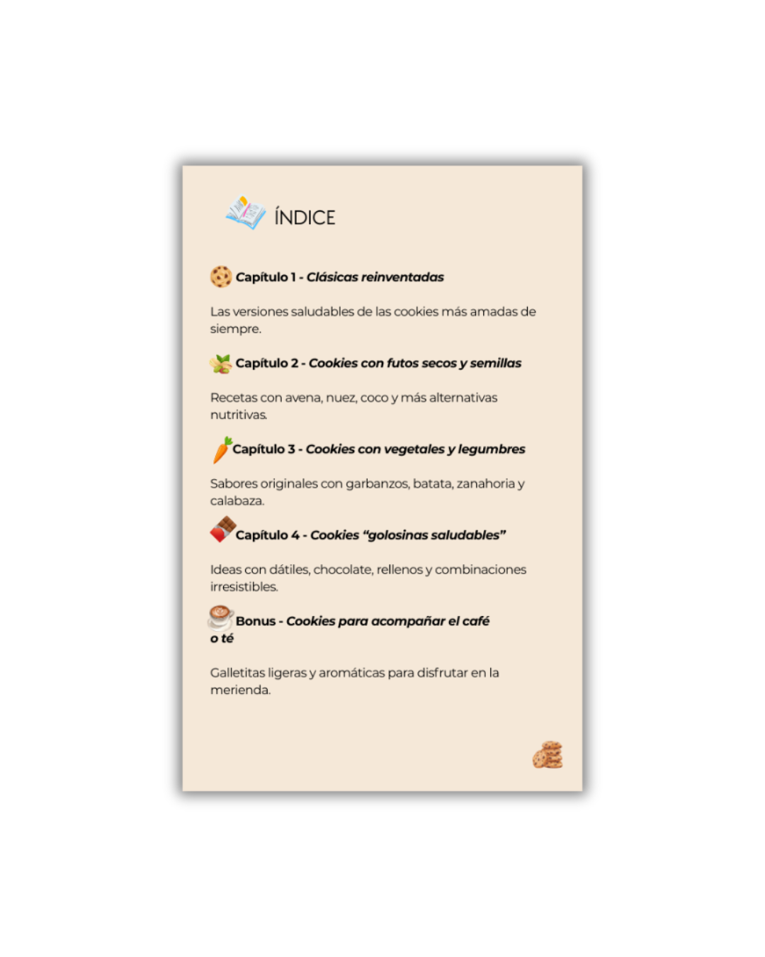 Más de 20 recetas fáciles y deliciosa para disfrutar de galletitas crocantes sin azúcar refinada. Preparadas con harinas nutritivas, legumbres y endulzantes naturales, perfectas para compartir en familia y cuidarte sin renunciar el sabor.